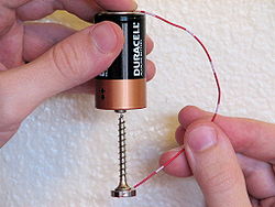 An electric current passes through the hub of the wheel which rim is dipped into a small mercury trough. The interaction of the current with the magnetic field of a U-magnet causes the wheel to rotate. The serrated wheel replaces the free wire (the tips) in Faraday's experiment. Though the original wheel, introduced by Barlow, was serrated the wheel will also work with a smooth round metal disk as well, usually made of a conductive material like copper. You can try to compare the efficiency of the two designs. Barlow's wheel demonstration:https://nationalmaglab.org... http://www.youtube.com... http://physics.kenyon.edu... The Invention of the Electric GeneratorWhereas the homopolar motor converts electrical energy into mechanical energy, the homopolar generator does the reverse: converts mechanical energy into electricity by reversed action. If in the above mentioned Faraday's electric motor experiments an electric current that passed through the free wire caused it to rotate around the permanent magnet then a moving wire through a magnetic field (perpendicular to it) will produce a voltage on the wire and if the circuit is closed also a current. In short, in the presence of an electromagnetic field a current can move a wire and a wire movement can generate a current.